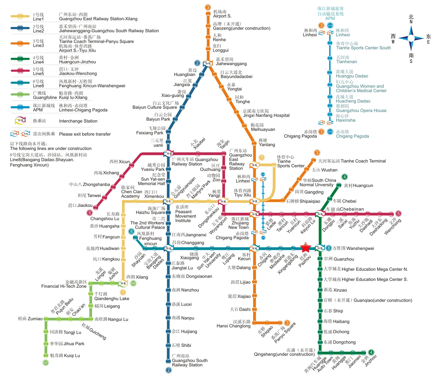 Guangzhou Metro Route Map:http://www.cantontradefair.com/transportation/Guangzhou-MTR.aspx